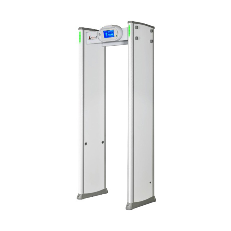 当发现可疑物体时安检门会发出报警声,同时面板和门柱部位可以看到具体报警区位。